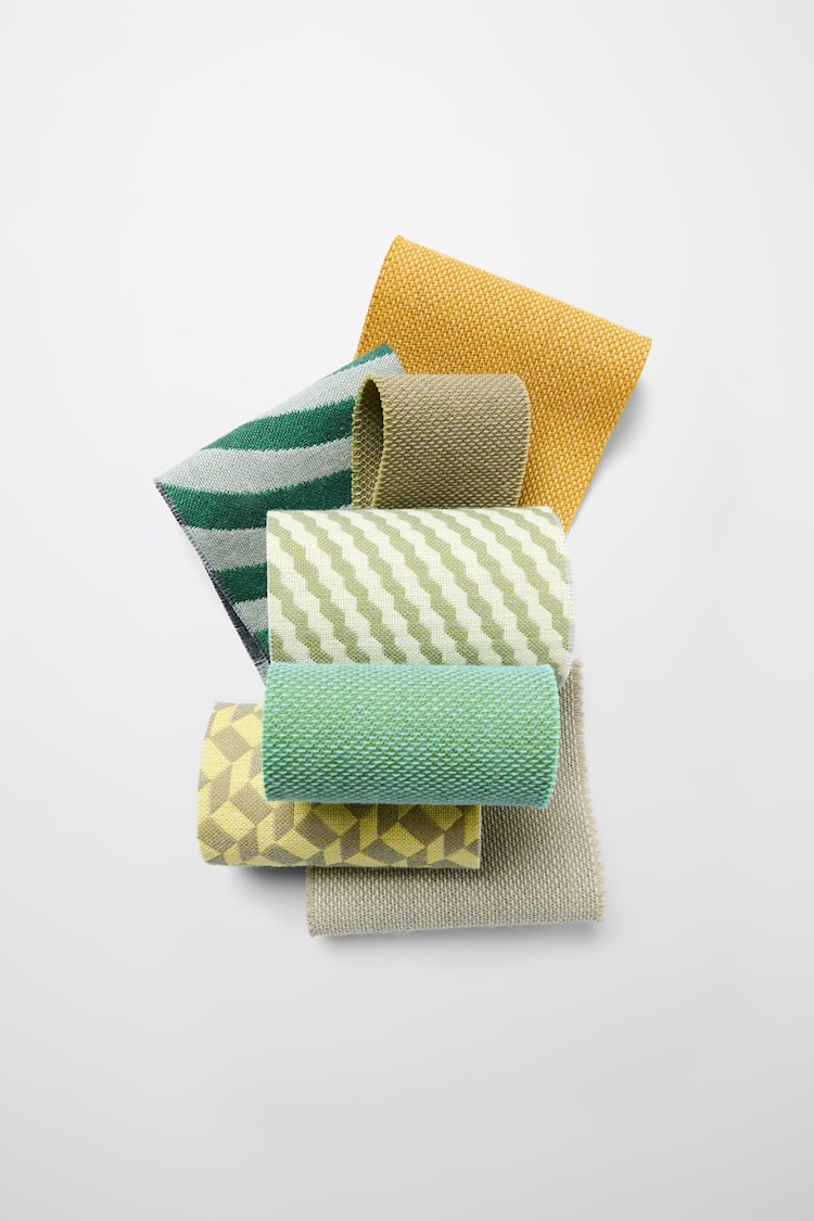 BonBon Crunch präsentiert ein diagonales, wellenförmiges Muster mit gerippten Linien in Bewegung – ein klarer Rhythmus, der zwischen grafisch und weich balanciert. BonBon ist eine Kollektion aus jacquardgewebten Woll-Möbelstoffen, bei der sechs grafische Muster die gleiche Konstruktion teilen. Mit spielerischer Präzision und einer Neuinterpretation klassischer Formen bringt BonBon das gewisse Etwas in jedes Interieur.
