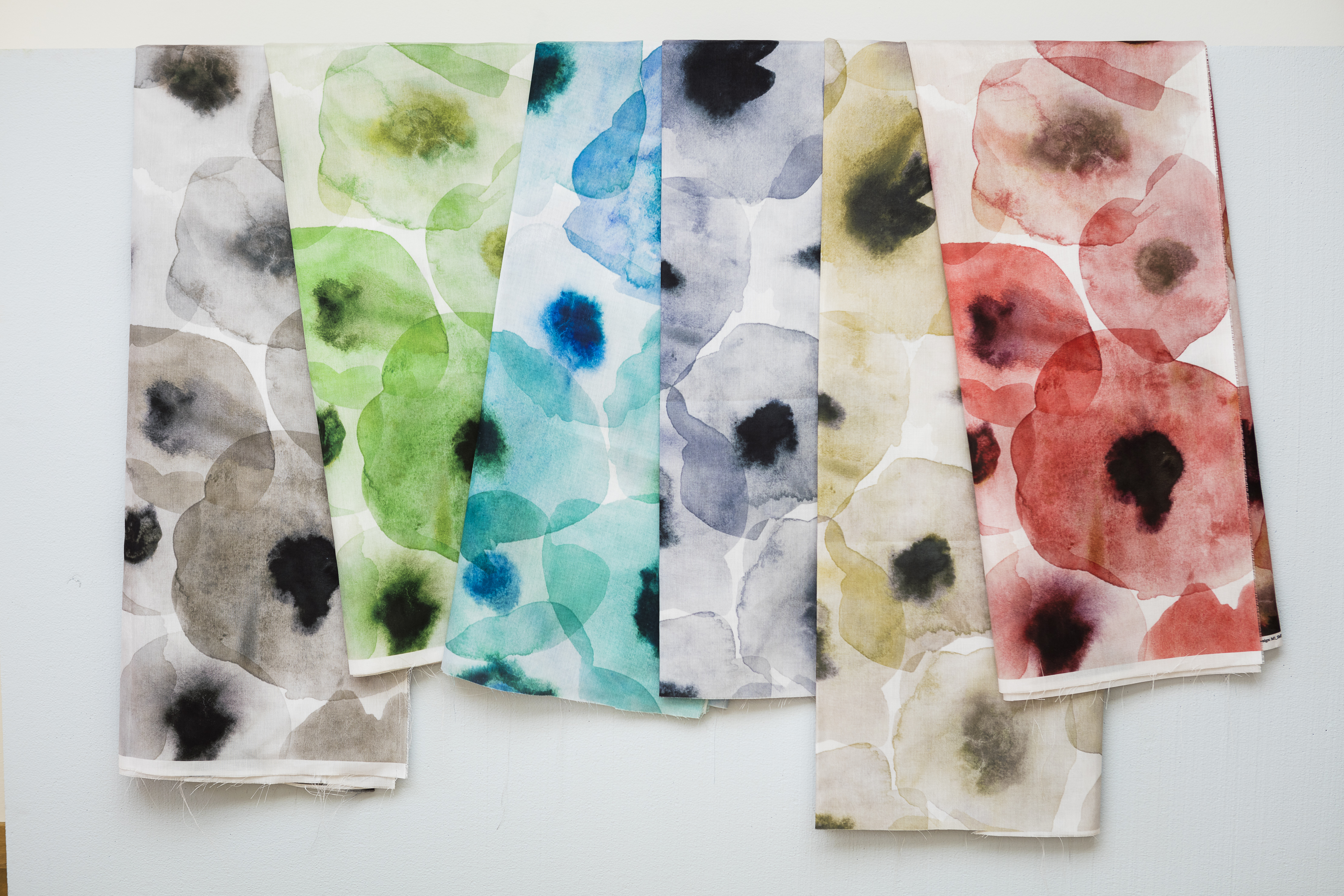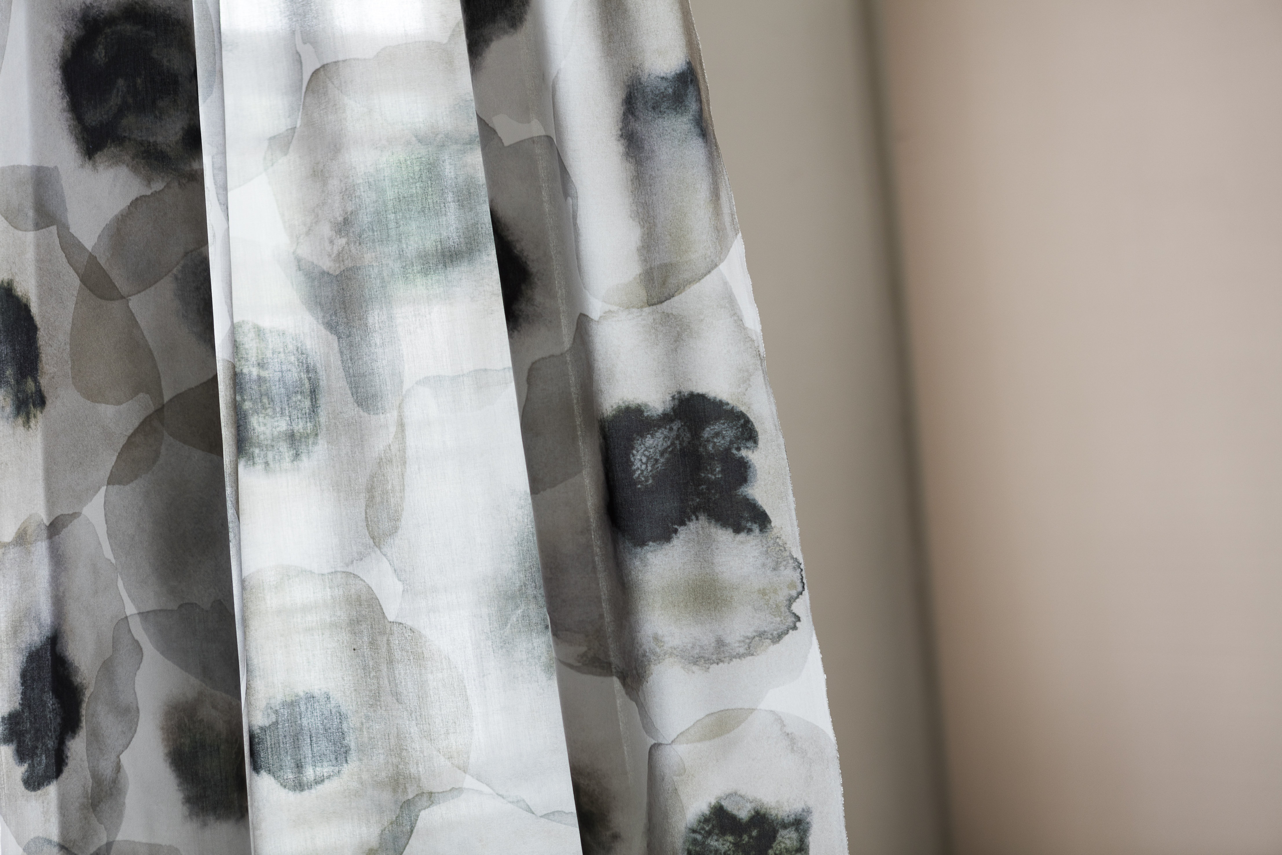 With expressive flowers in beautiful colours, designer Aoi Yoshizawa has created a drapery fabric with dynamics and depth. Like a delicate watercolour painting the Sumire adds a new dimension to any room. Sumire is japanese for the flower Violet, which blossoms in the spring. Sumire is printed on Karat, a popular Svensson mid-weight curtain fabric, and has many applications. With a pattern that has no beginning or end, Sumire is easy to use and the many hues in each colourway allows the fabric to fit into most schemes. Sumire is available in six colours, from playful spring green to elegant luxurious grey.
