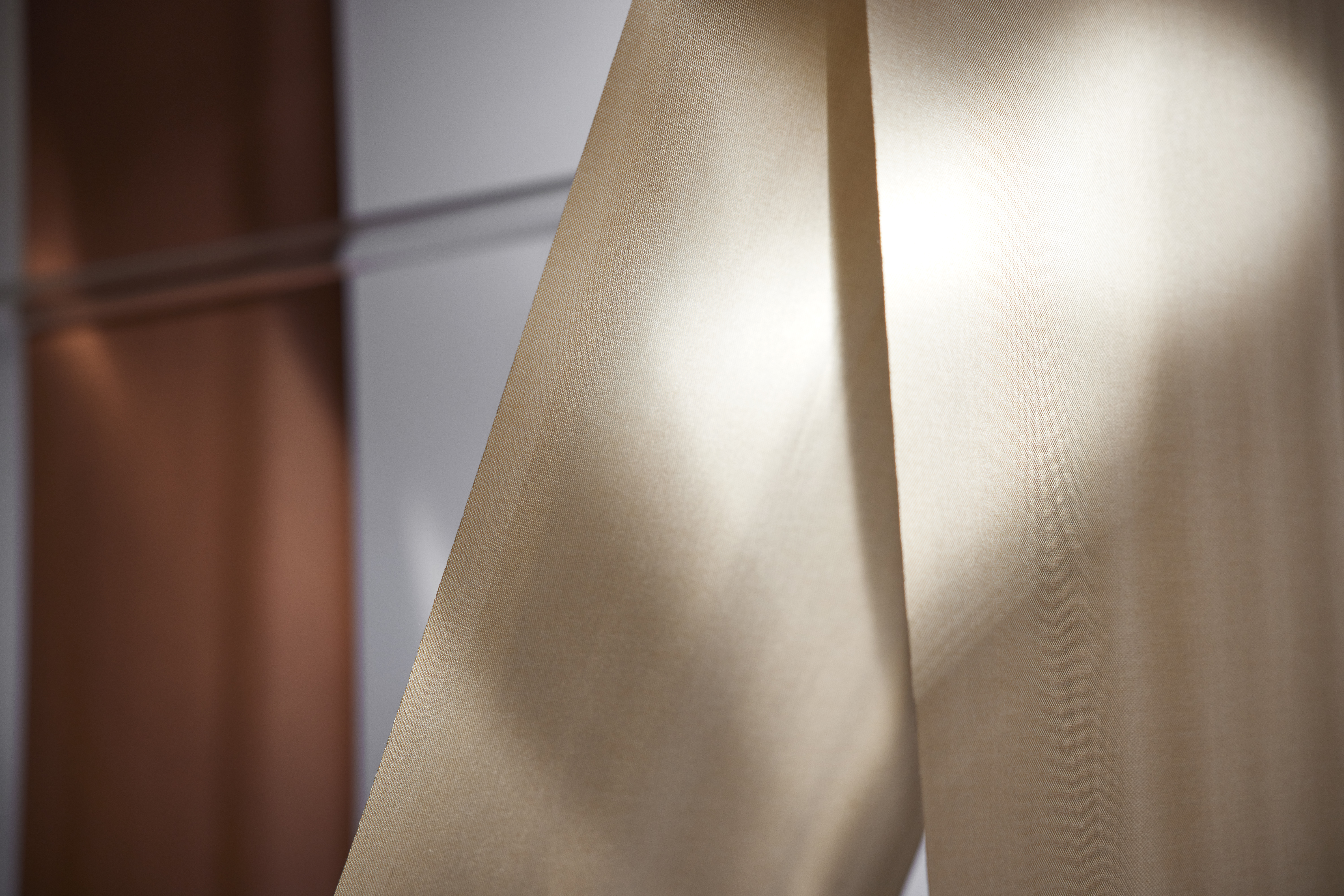 Its acoustic properties and understated elegance have made Grain a popular fabric. The sound absorbing curtain is based on various colours of contrasting yarns which together create a shimmering outward appearance. Its construction gives it a clear structure which contributes to the beautiful drape. Grain combines a sensation of softness with a sophisticated image and contemporary colour scale. This fabric enjoys widespread appreciation and is easy to combine with other textiles. Use it as a classic window curtain or to create new spaces for interaction.