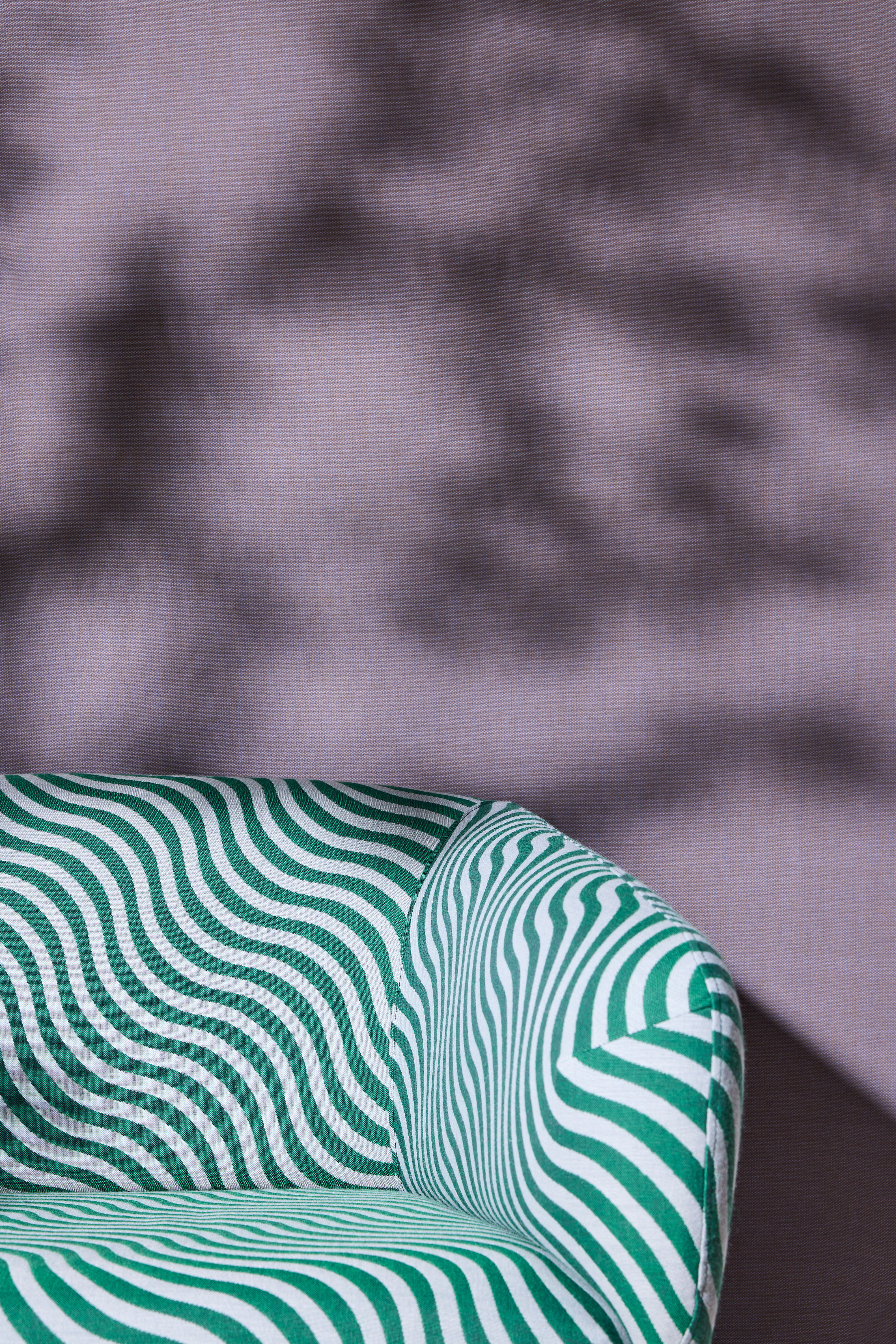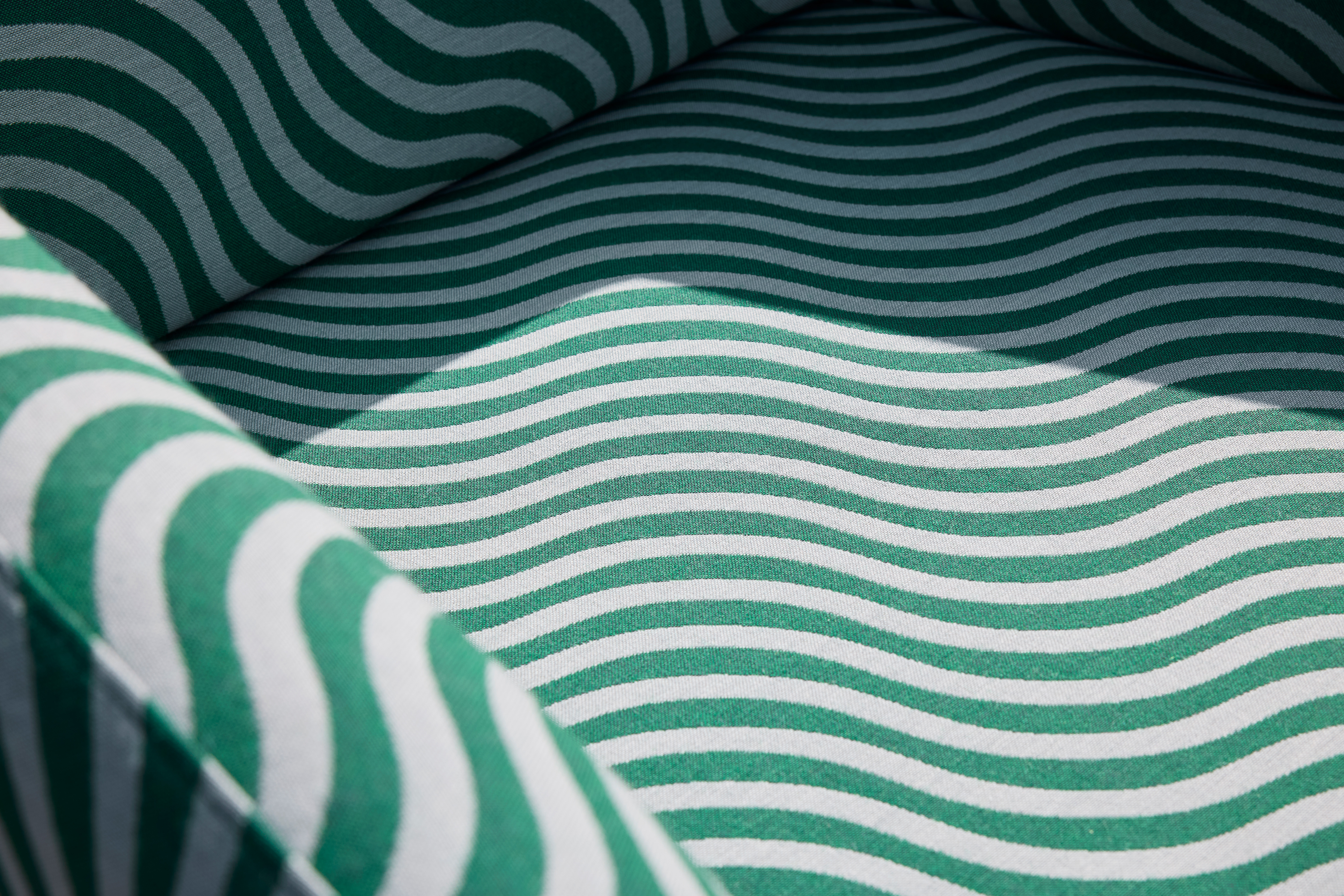 BonBon Scoop is a pattern of undulating stripes moving across the surface with subtle energy—a lively expression with movement and rhythm. BonBon is a collection of jacquard-woven wool upholstery fabrics in which six graphic patterns share the same construction. With playful precision and a reinterpretation of classic forms, BonBon adds something extra to any interior.