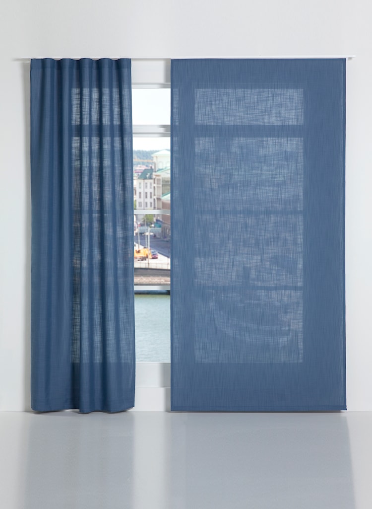 Garnfärgad gardin med linneliknande yta och fantastiskt fall. Ett stort urval av vackra naturnära färgställningar, där tvåfärgade varianter skapar fina visuella effekter på tygets struktur. Ett tyngre och modernt klassiskt bastyg med härlig struktur och ljuddämpande funktion.